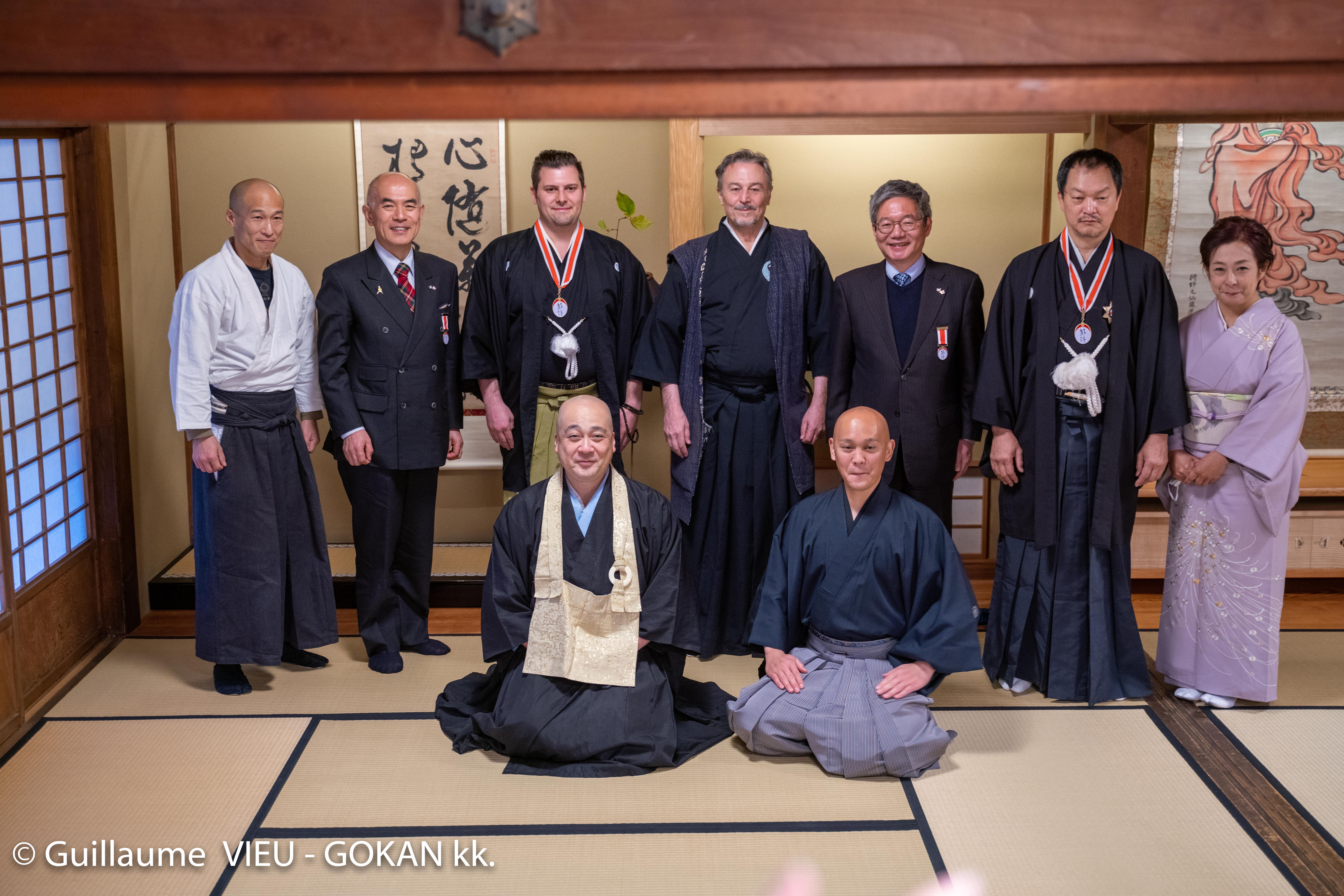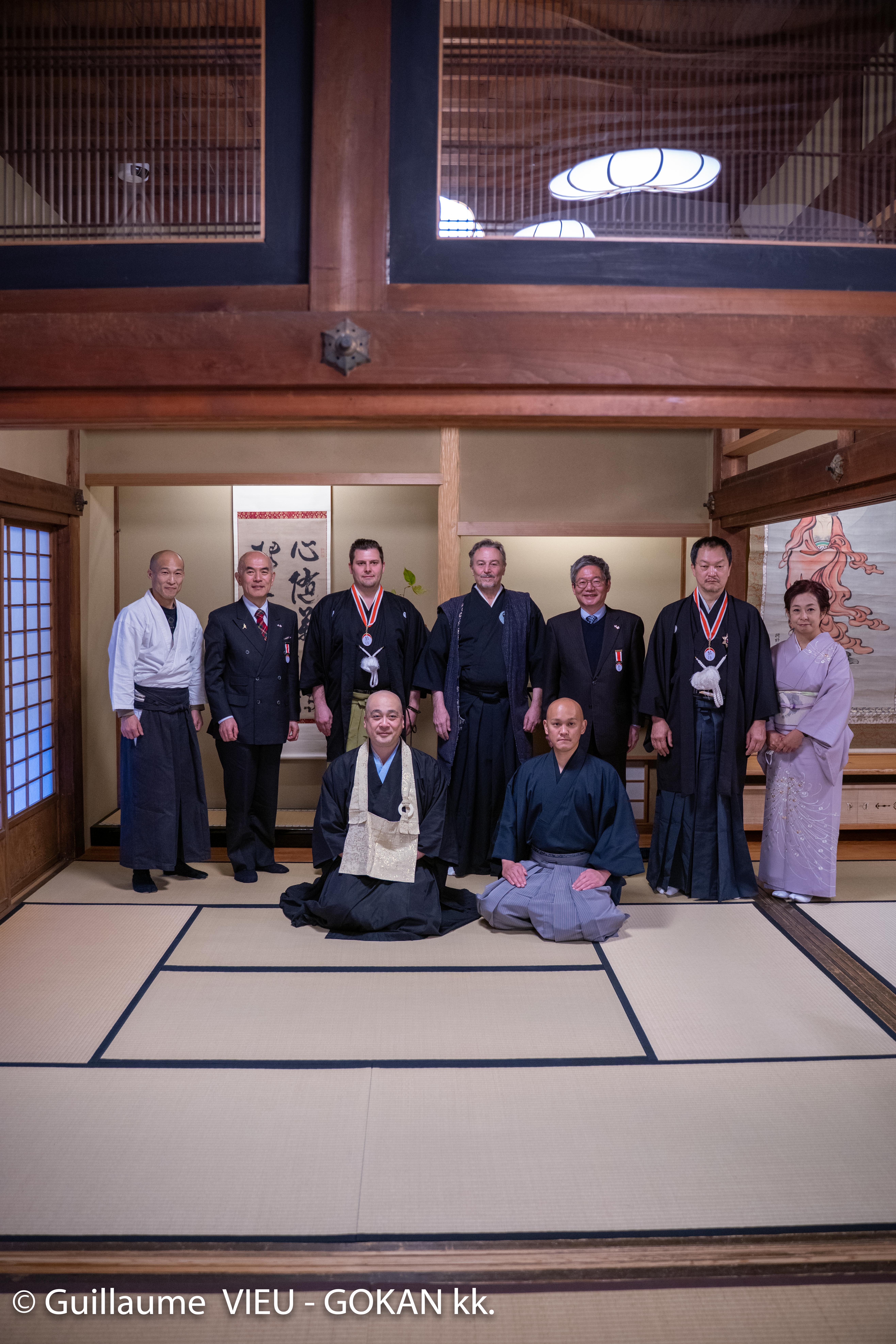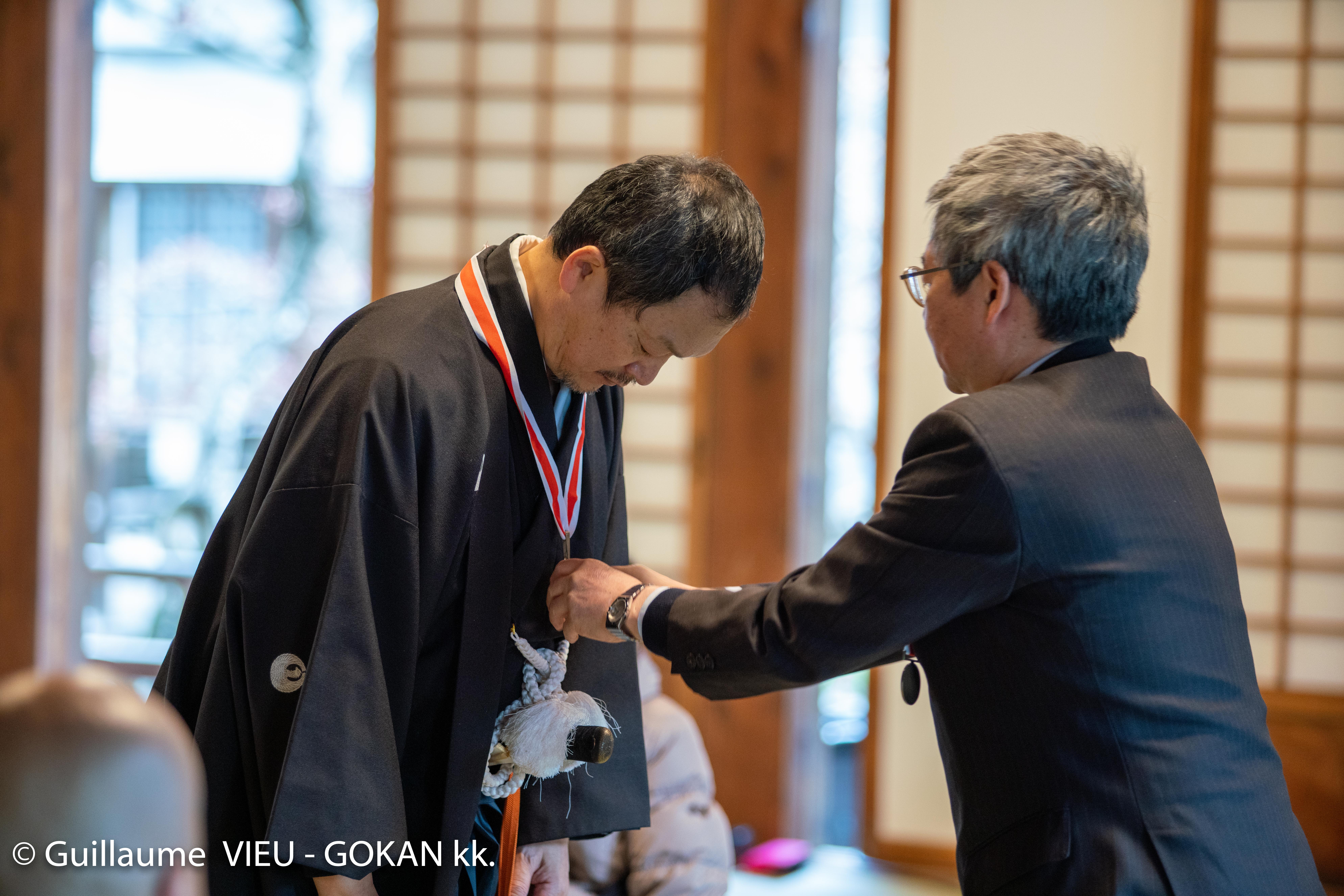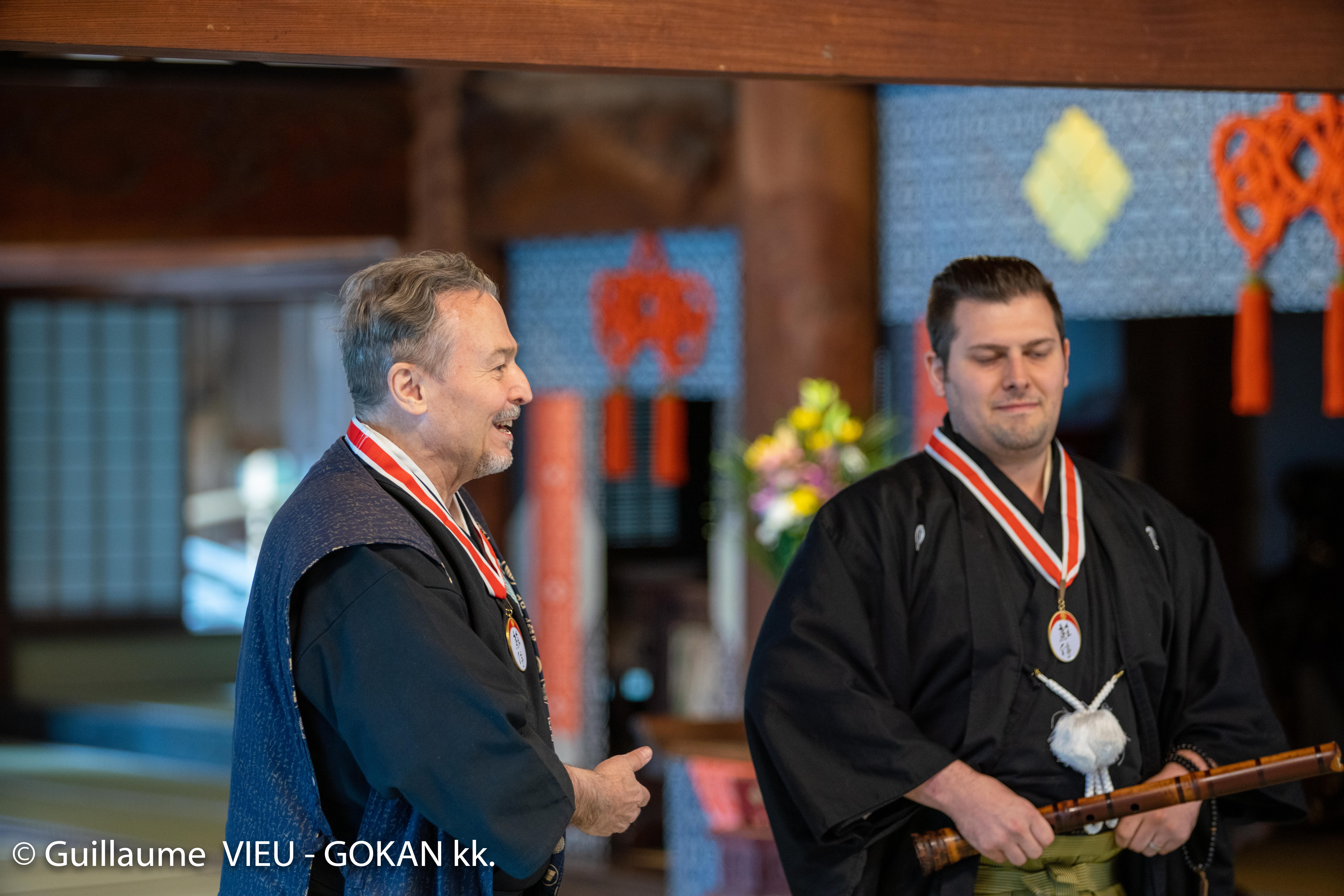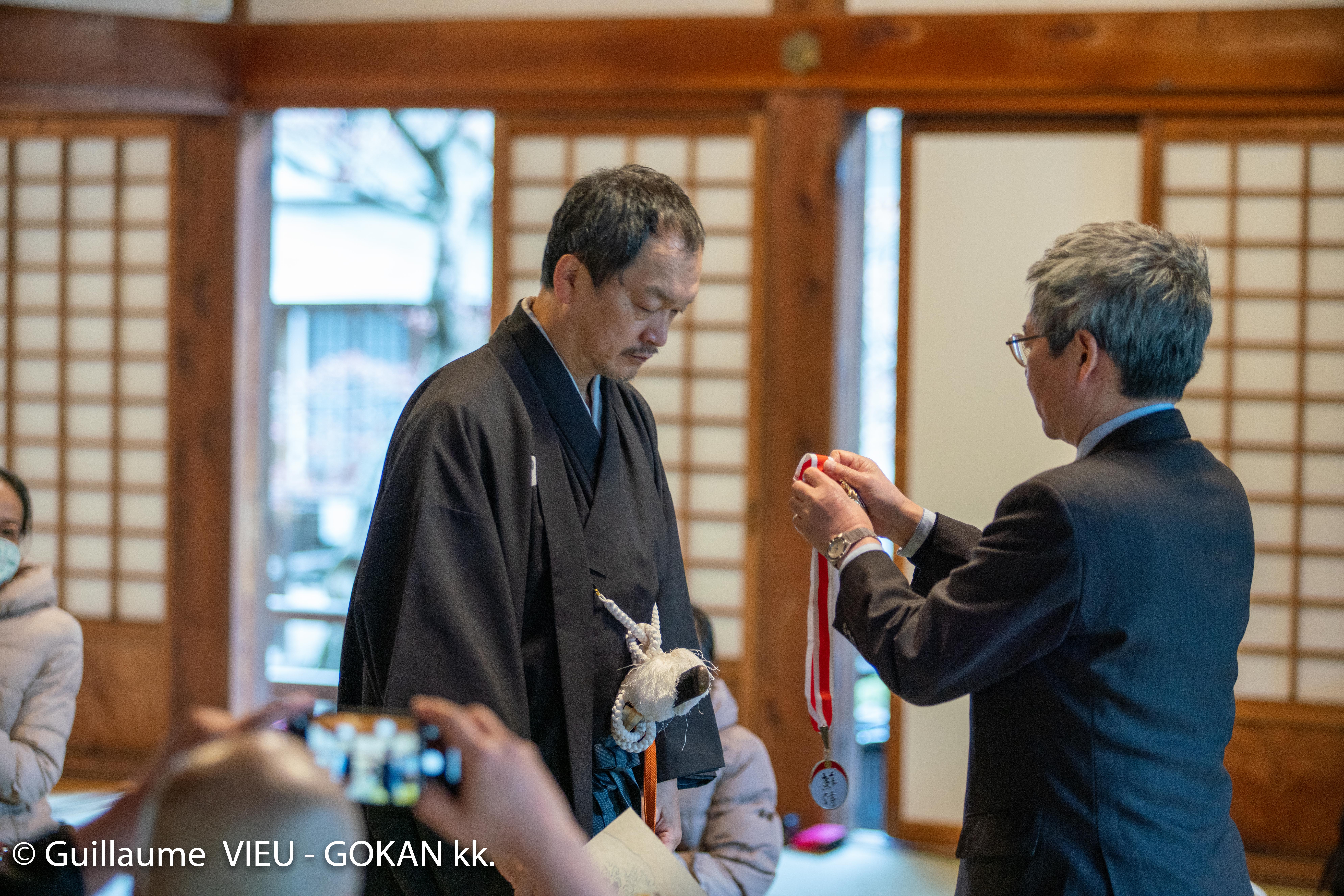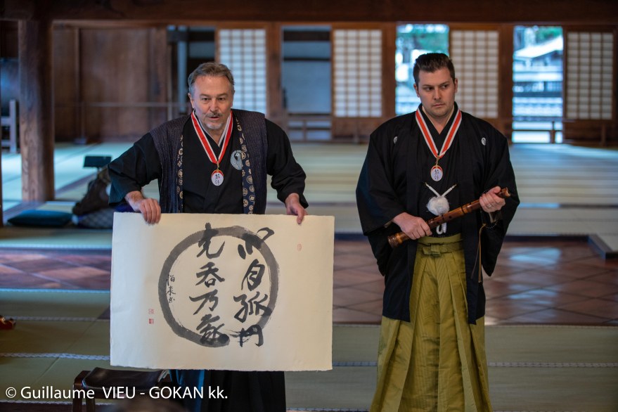 This year in Japan the Scottish Samurai Awards Ceremony was held at historic Erinji Temple (founded in 1380) in Yamanashi Prefecture on December 14, 2020, in correspondence to the 109th Anniversary of the passing of Thomas Blake Glover on December 16, 1911. We held the Scottish Samurai Awards Ceremony once before at Erinji in the fall of 2018, which was attended by Lord Charles Bruce, Ronnie Watt, and over a dozen members of the Scottish Samurai Japan Tour from Scotland. This year in 2020 it was presided over by Matsunaga Daisuke, former Consul General to Scotland, who delivered a speech in English and Japanese recognizing the importance of the event, as well as by Kendo Master Yamazaki Kazuo. Words of Congratulations were presented from Ronnie Watt and read by William Reed. The Ceremony included a breathtaking demonstration of the Sword by Mugairyu Master Takeda Hougyoku, a performance of the Japanese Taiko Drum Master Sato Kensaku, and a collaborative performance of calligraphy with William Reed involving Shakuhachi Player Shawn Renzoh Head. Furukawa Shuken, the Zen Master of Erinji Temple, spoke at the Ceremony and graciously opened up the entire temple to our use for the Awards. The event was covered by Yamanashi Broadcasting System’s program Tetete TV, which is viewed throughout the Prefecture.