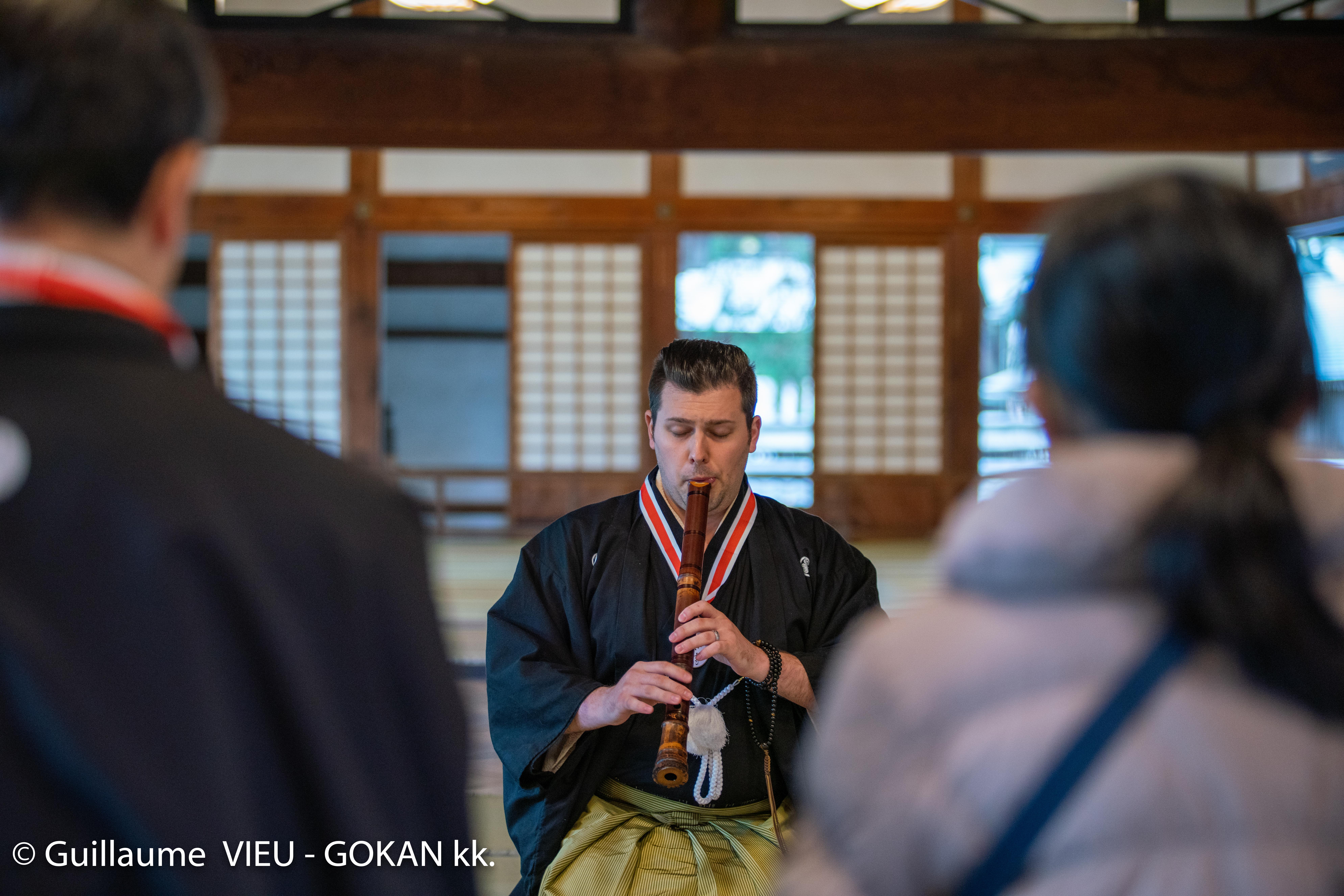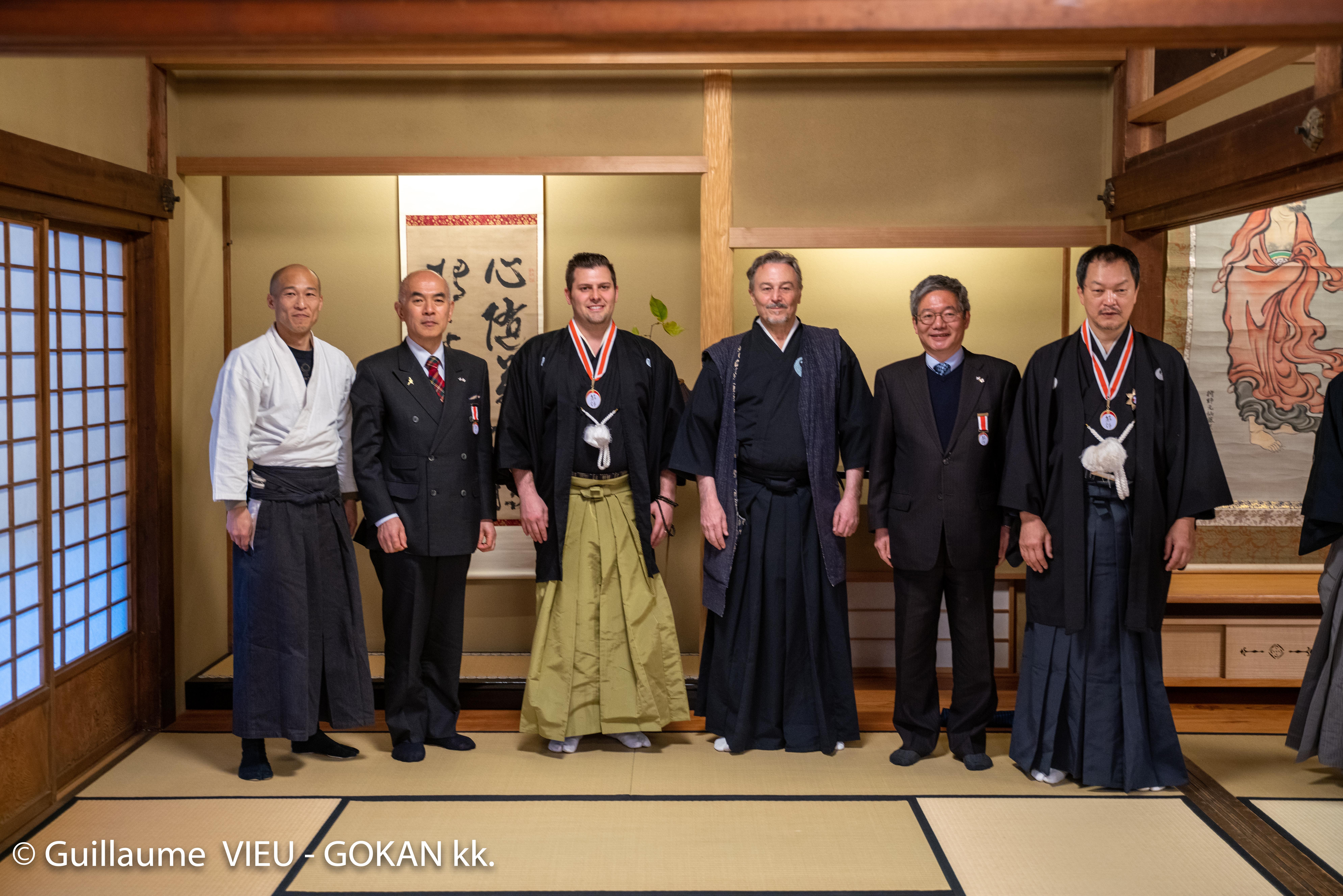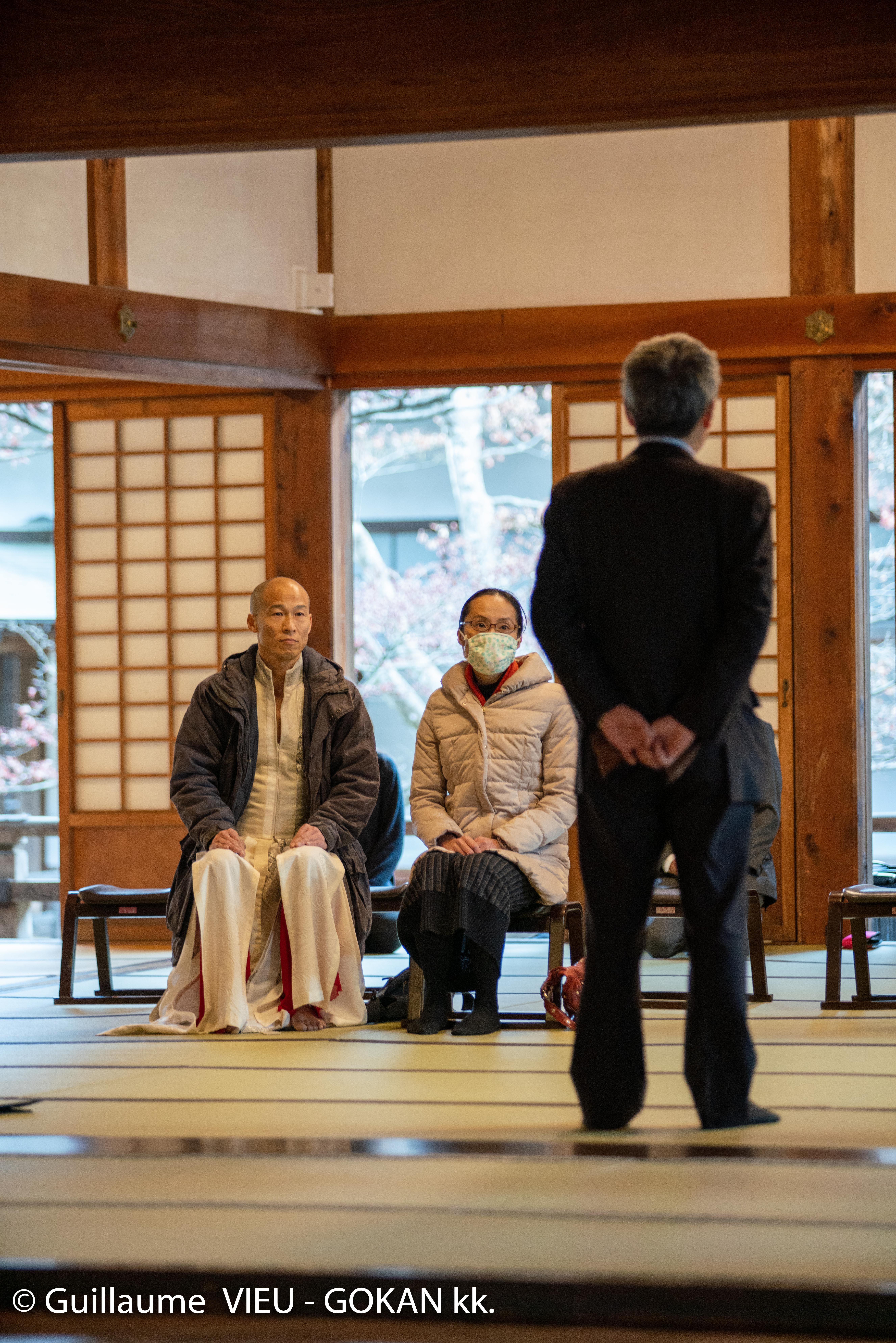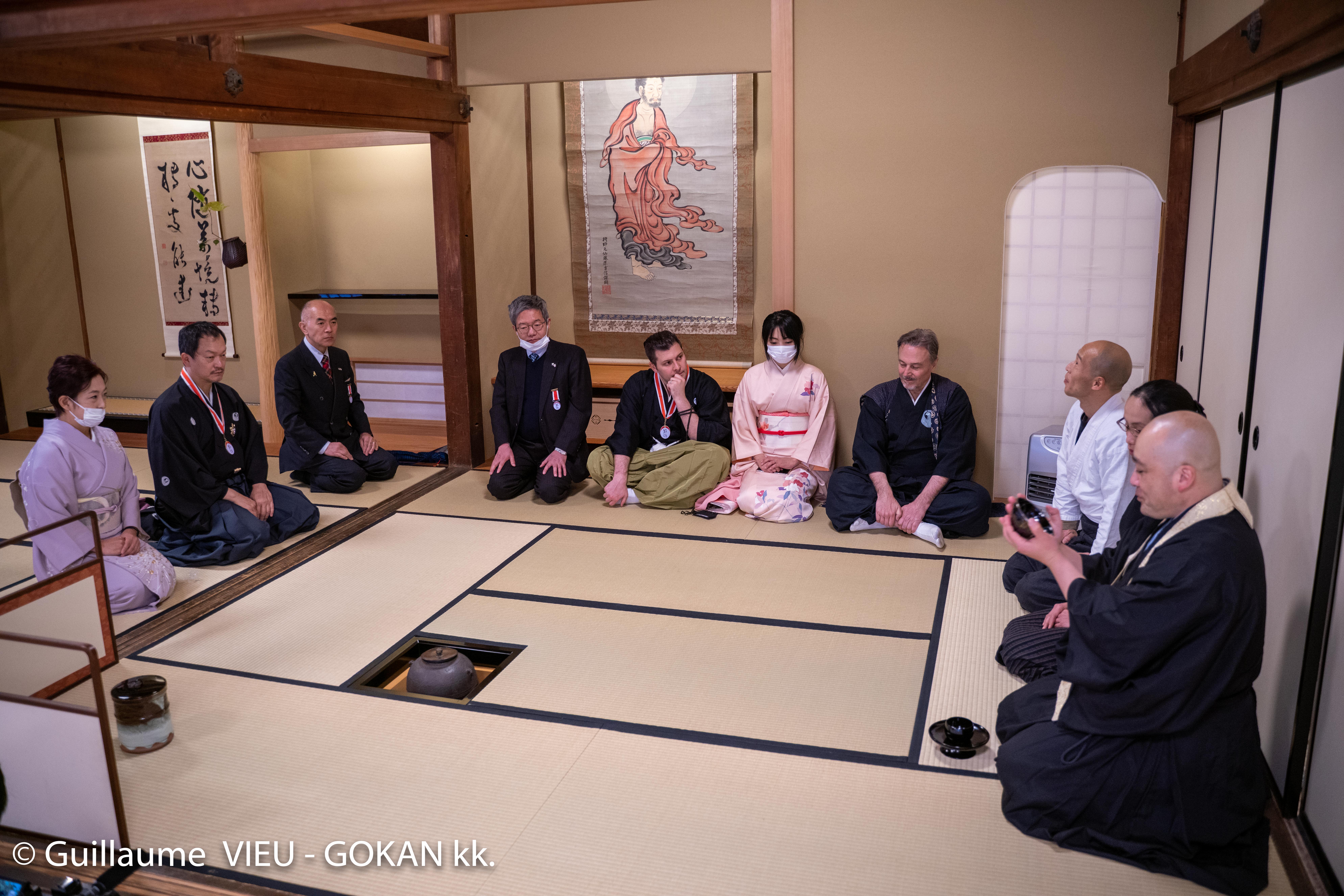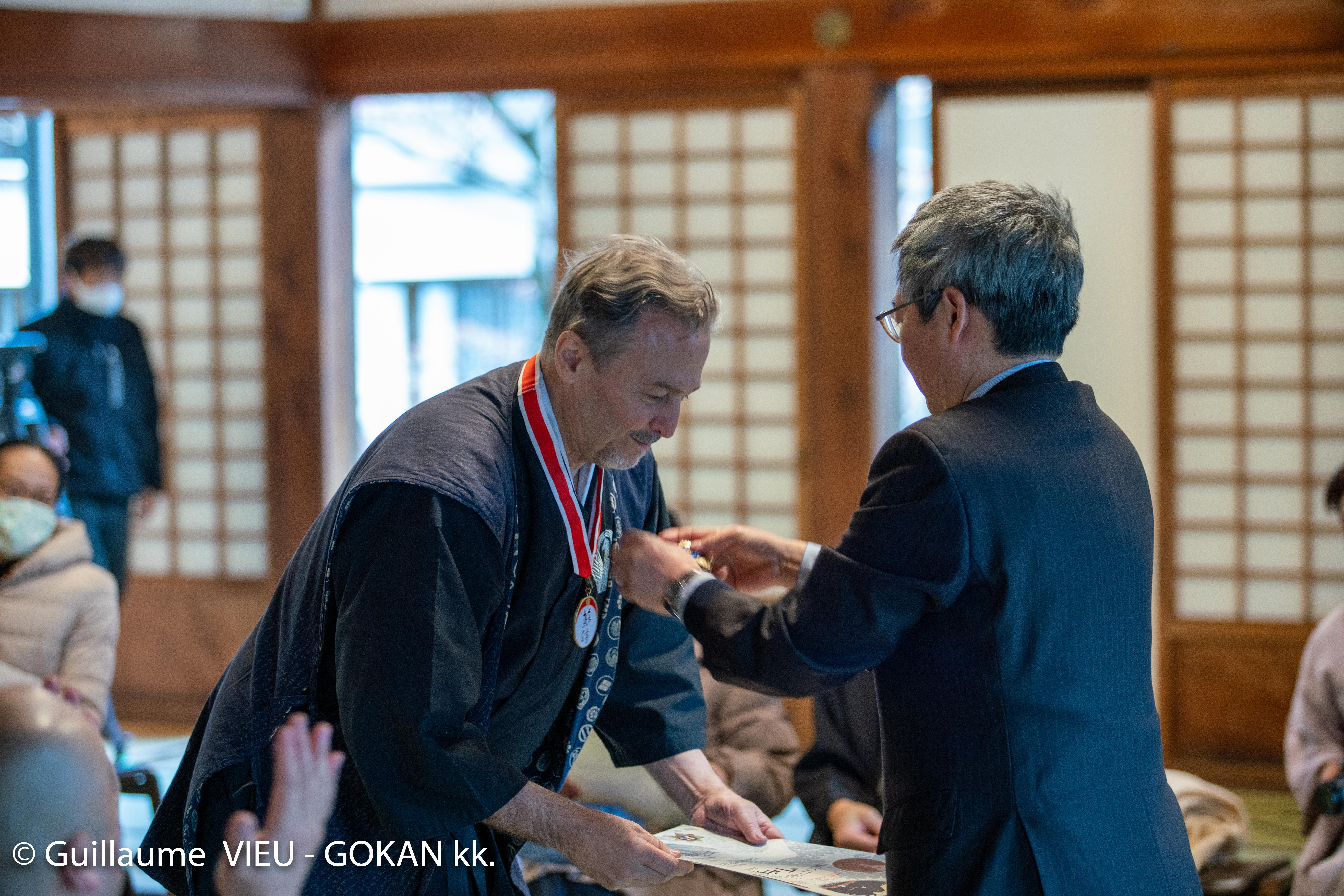 This year in Japan the Scottish Samurai Awards Ceremony was held at historic Erinji Temple (founded in 1380) in Yamanashi Prefecture on December 14, 2020, in correspondence to the 109th Anniversary of the passing of Thomas Blake Glover on December 16, 1911. We held the Scottish Samurai Awards Ceremony once before at Erinji in the fall of 2018, which was attended by Lord Charles Bruce, Ronnie Watt, and over a dozen members of the Scottish Samurai Japan Tour from Scotland. This year in 2020 it was presided over by Matsunaga Daisuke, former Consul General to Scotland, who delivered a speech in English and Japanese recognizing the importance of the event, as well as by Kendo Master Yamazaki Kazuo. Words of Congratulations were presented from Ronnie Watt and read by William Reed. The Ceremony included a breathtaking demonstration of the Sword by Mugairyu Master Takeda Hougyoku, a performance of the Japanese Taiko Drum Master Sato Kensaku, and a collaborative performance of calligraphy with William Reed involving Shakuhachi Player Shawn Renzoh Head. Furukawa Shuken, the Zen Master of Erinji Temple, spoke at the Ceremony and graciously opened up the entire temple to our use for the Awards. The event was covered by Yamanashi Broadcasting System’s program Tetete TV, which is viewed throughout the Prefecture.
