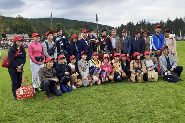 Andy Anderson is the owner of Abstich, a well known embroidery company in Aberdeen. Andy designed the embroidered caps for the Nagasaki visitors from Japan seen here at the Lonach games.