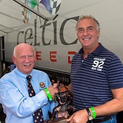 Tommy Dreelan, presented with the Scottish Samurai (Shogun) Award, 25th August, Knockhill Race Circuit (British Touring Cars Round), the first award of Celtic Shogun. Tommy was a winner of Business Entrepreneur Hall of Fame, has competed with the British Porsche Carrera Cup and the historic F1 and Group C in the UK and Internationally. For many years through his Celtic Speed Racing Team sponsored young drivers get started in this highly competitive sport.